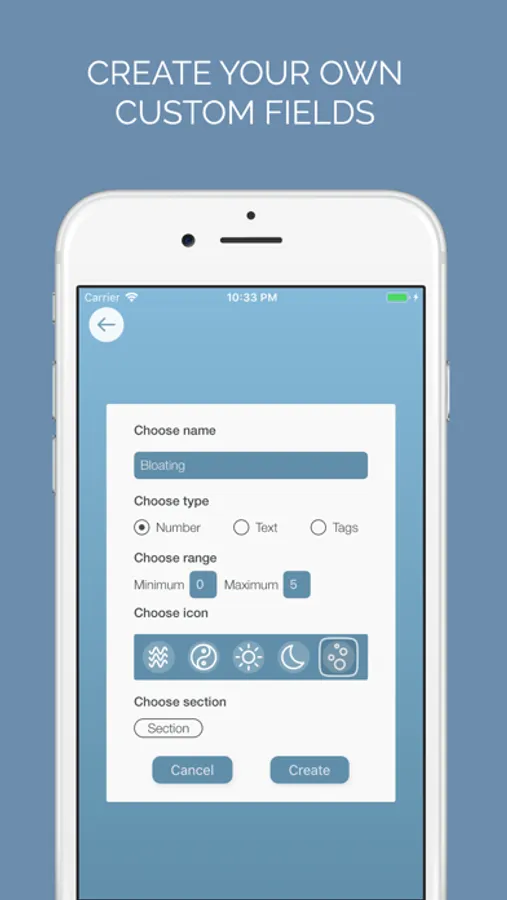 You can track how you feel, what you eat, water intake, stress levels, bowel movements, notes and custom fields you define. By keeping a diary, you may learn significantly more about your patterns and possible triggers.