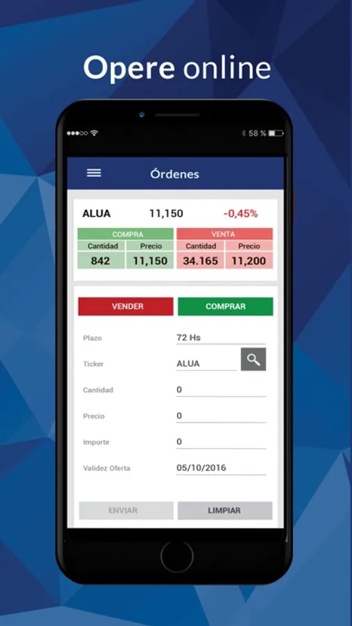Haciendo clic en cada especie, accedemos a información de la misma. Desde esta pantalla también se puede ingresar una orden, presionando el botón de C/V