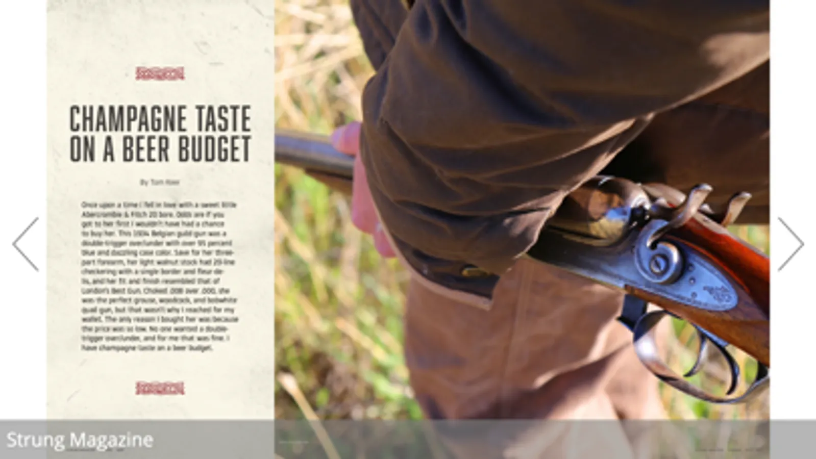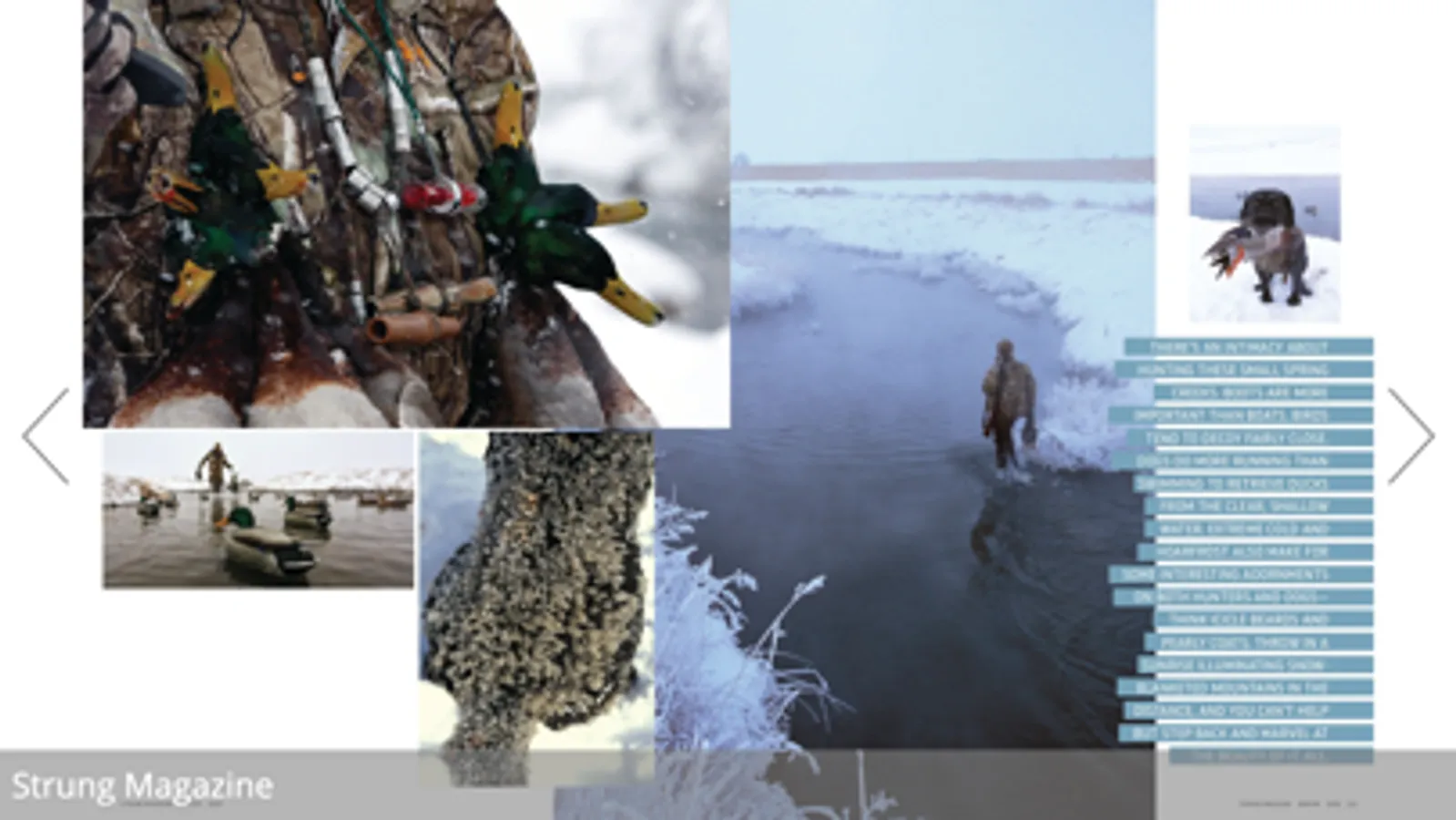 Published quarterly, Strung Magazine is the true voice of hunters and anglers everywhere. We understand a life outdoors ranges from casual to extreme, social to solitary, and comes with highs and lows. Whether it’s a pheasant hunt with friends, hours alone in a tree stand, breaking ice for late season mallards, or sweating on the bow of a skiff—we know our readers aren’t one trick ponies. It’s this variety that makes a life outdoors so infinitely fascinating. Through meaningful writing and beautiful photography, Strung ties the outdoors together.