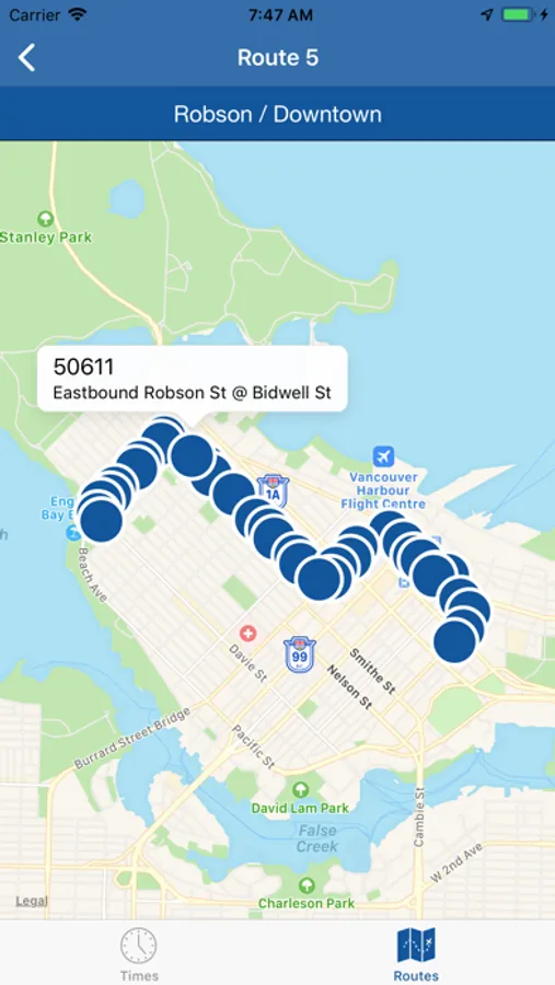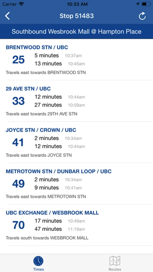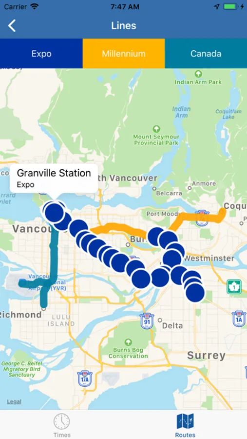 Live stop times and routes. This app works around Vancouver, Burnaby, New Westminster, Surrey, Coquitlam, and Richmond.