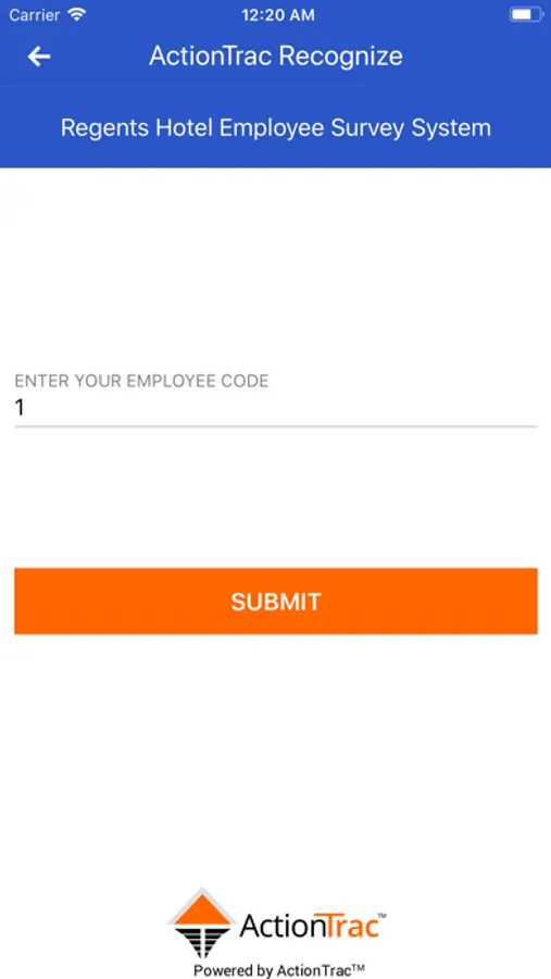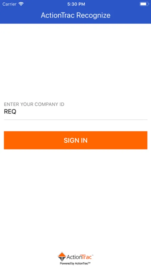 The worker (user of the app) needs to enter their Recognize company code (provided by ActionTrac Recognize) to open the nomination screens.