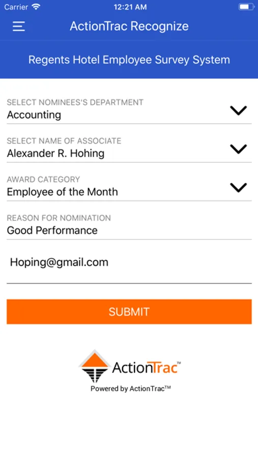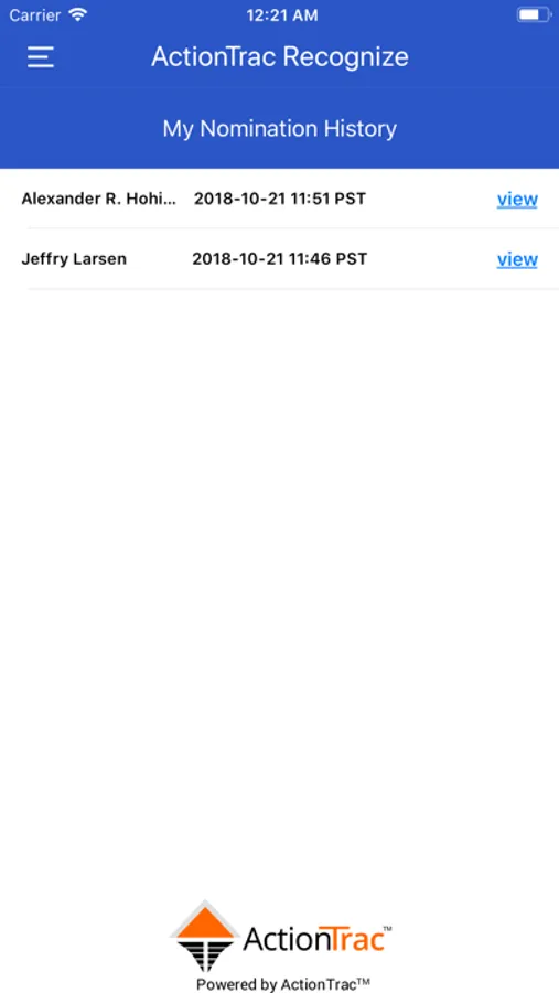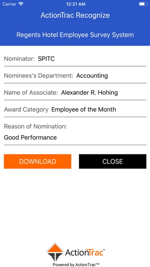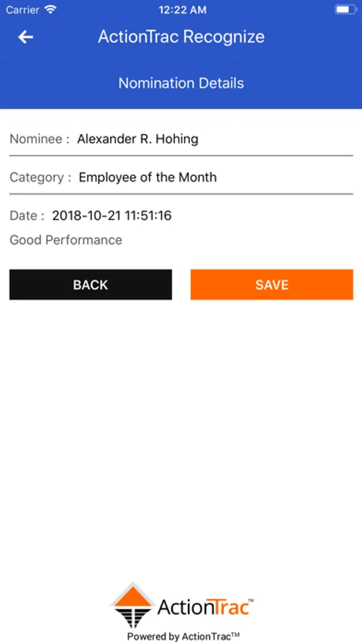 ActionTrac Recognize app provides workers to nominate his/her colleagues.