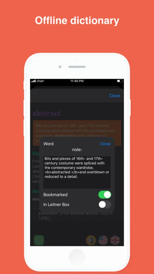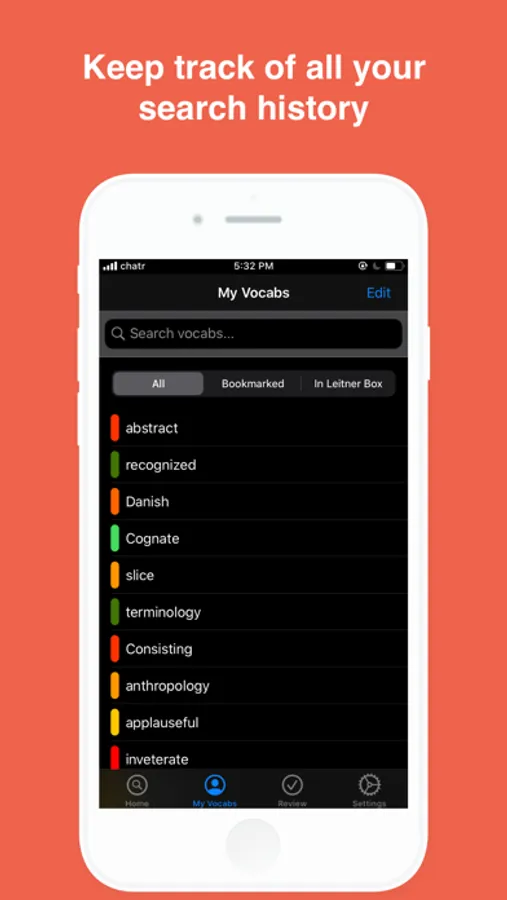 Vocapture is the leading English dictionary app for iPhone – with over 600,000 definitions from the English Wiktionary. It works entirely offline without any further file to download!. Install the dictionary for access to definitions whenever you need them. We find out that only bookmarking the words is useless unless you practice them from time to time. Vocapture is not just a dictionary but also a learning tool by acquiring the Leitner system technic. Learning vocabulary has never been easier!