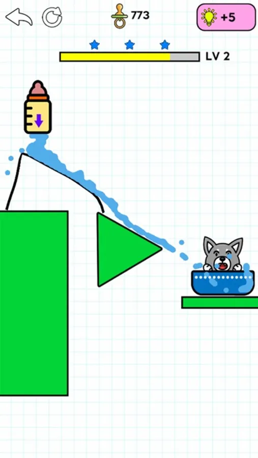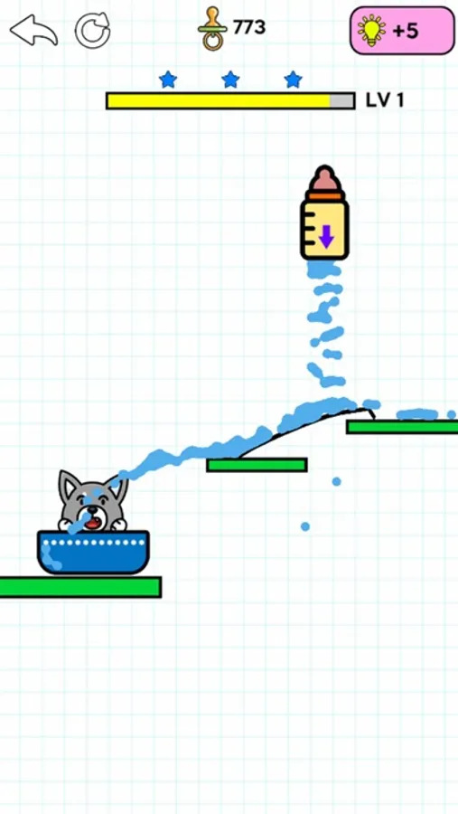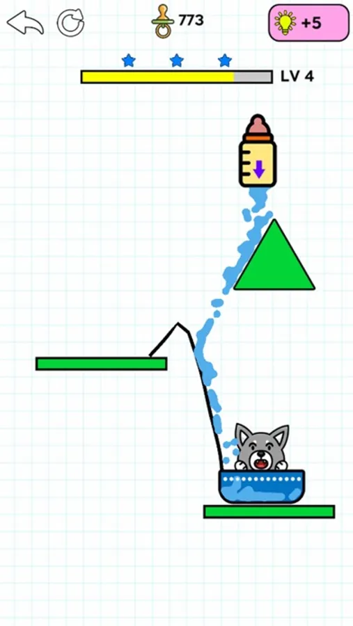 The corgi is sad because it's dirty. Your job is to draw a line to make the bathtub filled up with water and corgi smile again.