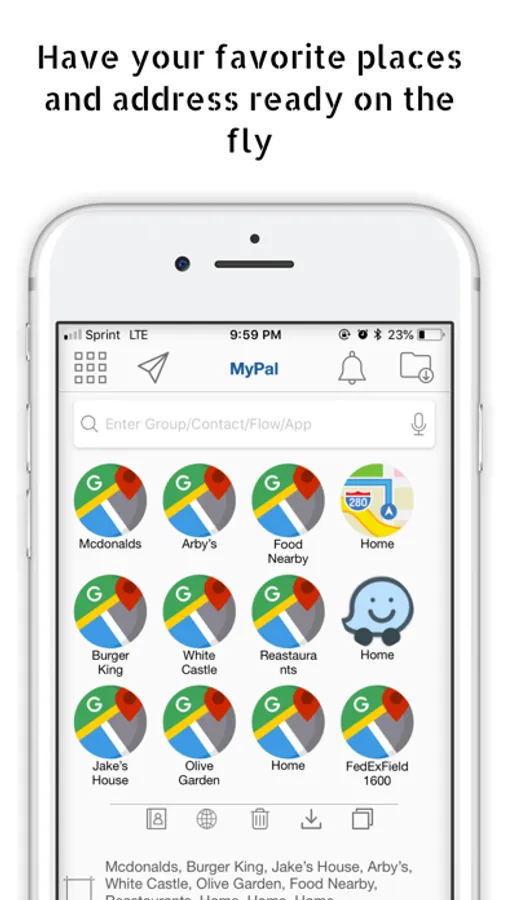 Forgetting what to eat or how far you are from a location? You can have a group of your favorite restaurants,places, etc. and check how far they are from you via Google Maps, Waze, or Apple Maps.