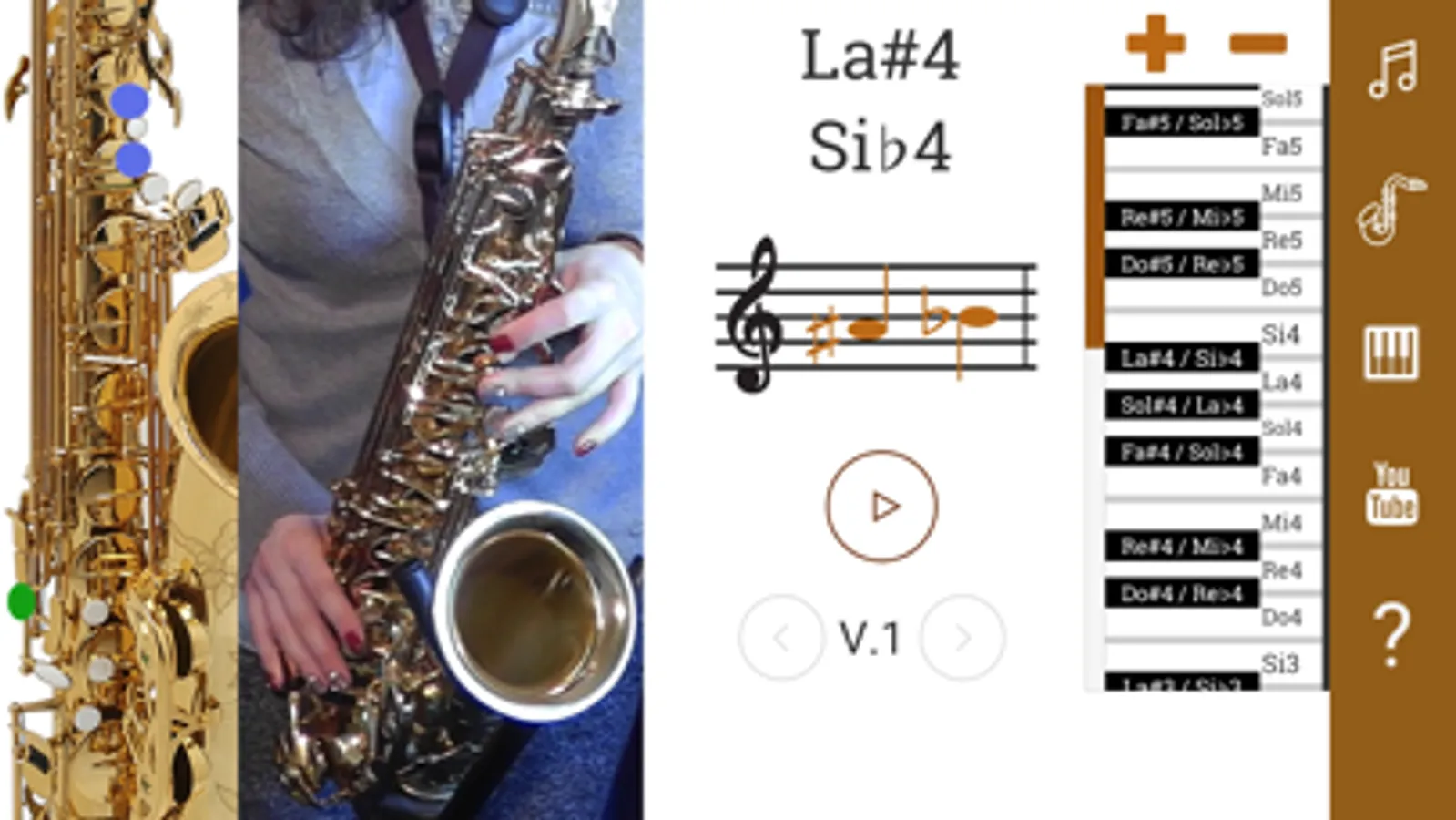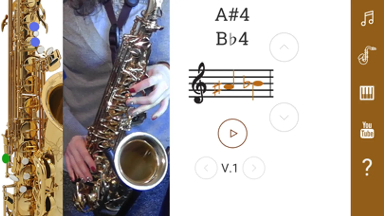 2D Saxophone Fingering Chart - How To Play Saxophone shows you the position of the fingers on the instrument. You can hear the sound of each musical note. There is a diagram of the finger positions and a demonstration by a live saxophonist. There is a section with saxophone lessons. You can choose different types of saxophone: Soprano, Alto, Tenor, Baritone.