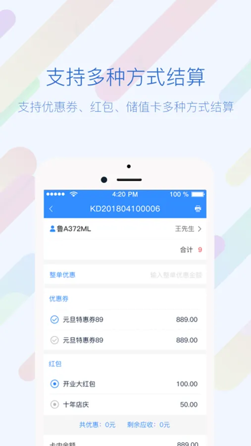 1.5支持创建客户、商品;查看客户历史消费详情;会员卡详情;快速了解进店客户情况