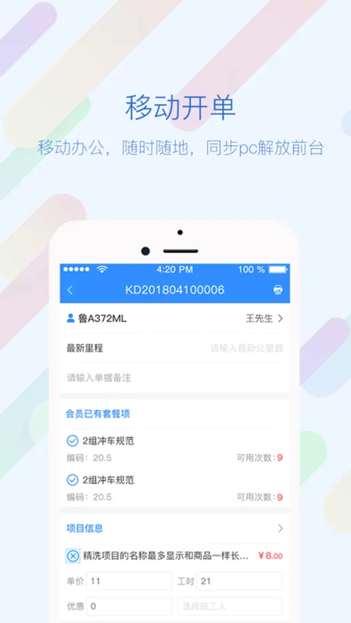 1.2支持车检开单,自定义检查指标项,上传照片,并推送至客户手机