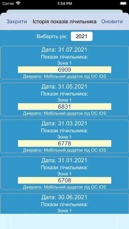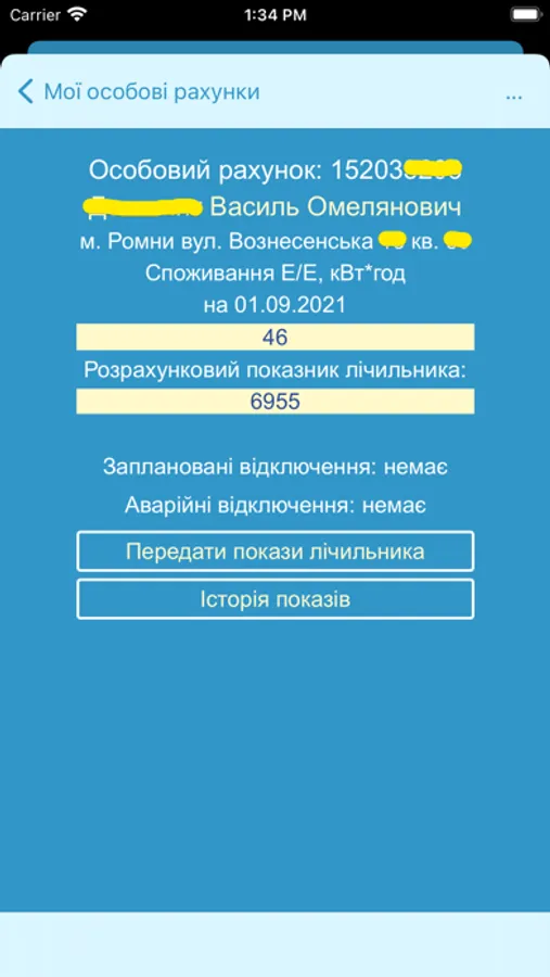 • переглянути історію переданих показників лічильника