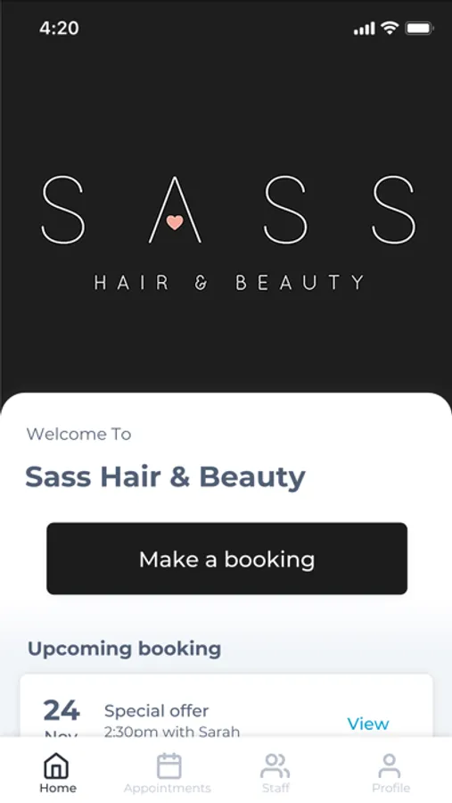 The Sass Hair & Beauty app makes booking your appointments and managing your loyalty points even easier. You're just a few taps away from feeling good and looking great!