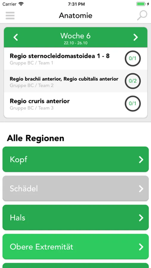 Diese App wurde für das Praktikum Klinische Anatomie an der Universität Zürich optimiert.