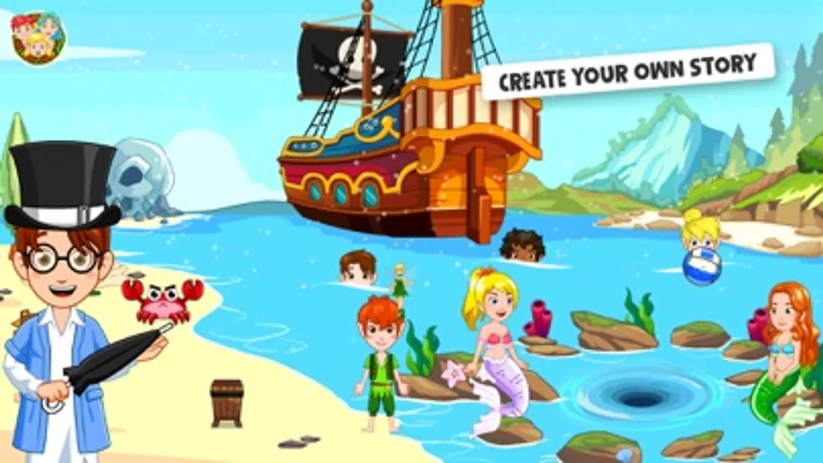 Wonderland is a magical game where you create your own fairytale adventure and play out stories you create. Peter Pan, Wendy, Captain hook and the lost kids are ready for a new adventure. Explore the lost kid's tree house, visit the pirate's ship and discover hidden treasures. Filled with lots of new characters and locations this game will connect to other Wonderland games making your fairytale bigger than ever!