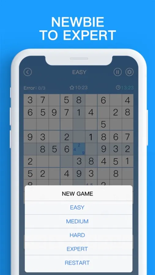 Sudoku - Classic Puzzles have four difficulty levels: easy , medium , hard, and expert! Choose any level you like!