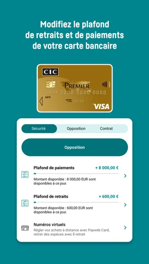 - Activer ou désactiver certaines fonctionnalités (paiement internet, retrait et opération à l'étranger).