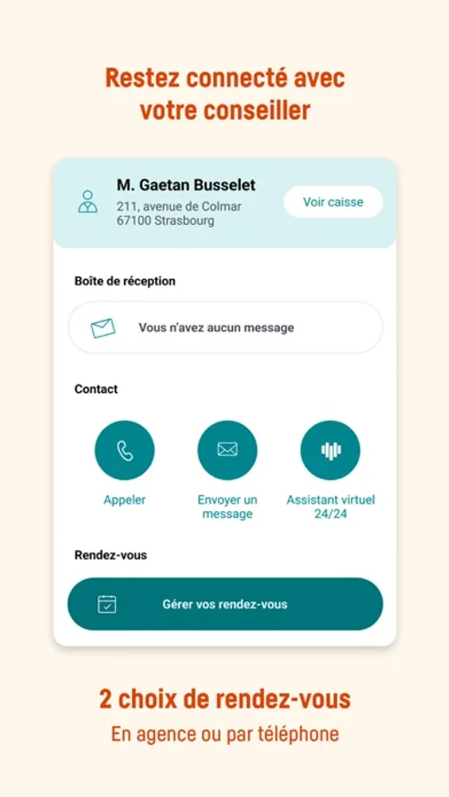 - Prise de rendez-vous avec un conseiller, en visio, en agence ou par téléphone.