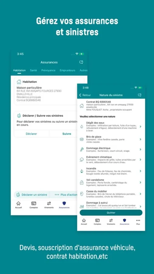 - Déclaration et suivi de sinistres automobiles ou habitation.