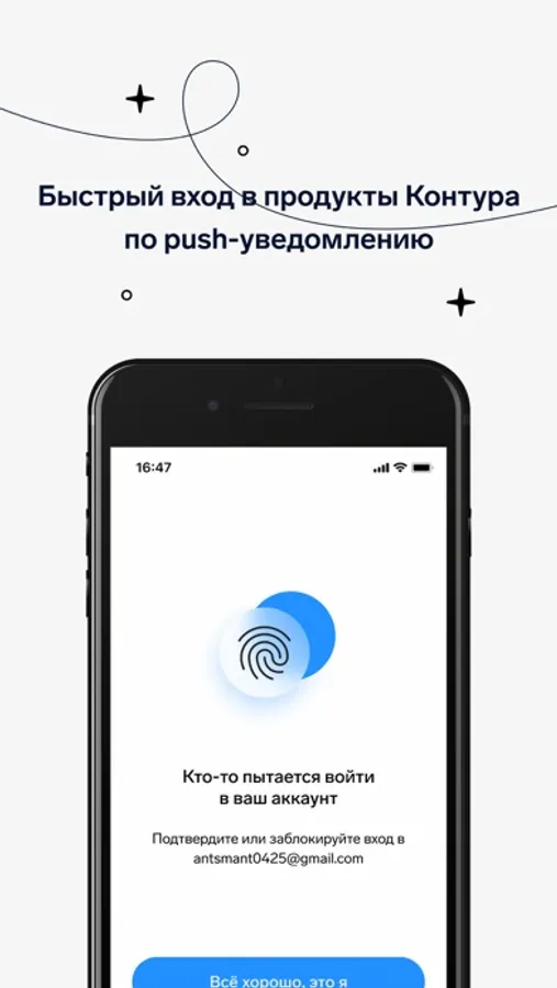 Аутенитификацию в Контур.Паспорт можно подтвердить через push-уведомление, которое придет вам на устройство.