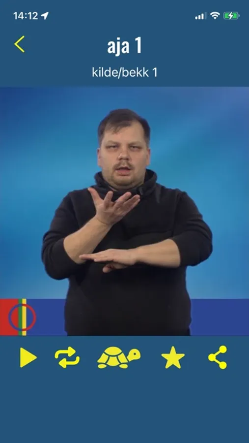 Noen av tegnene er samlet i egne gruppelister. Du kan blant annet se gruppeliste med kun samiske tegn, reindrift, duodji og slekt. Du kan også lage din egen liste med utvalgte tegn. Klikk på stjerna under videovinduet for å lagre tegnet i dine favoritter. Skilpadden gir deg mulighet til å spille av tegnet i sakte tempo. Med pilene kan du velge om du vil spille av tegnet flere ganger. Trykker du delesymbolet kan du sende enkelte tegn, eller link til nedlastning av appen til andre.