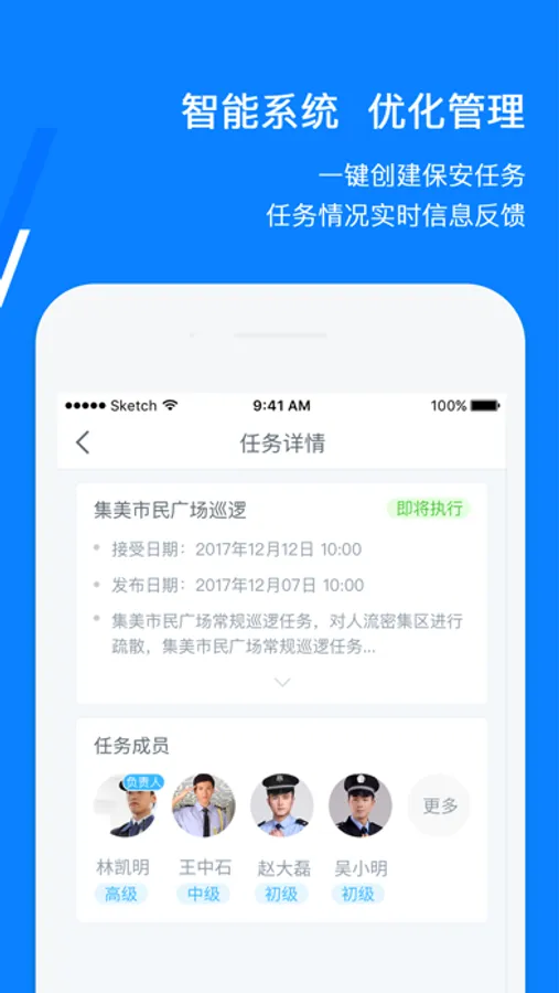 任务管理:“任务派发、接收、轨迹跟踪”全程动态管理,“人员、位置、任务”三位一体可视化监管,实时掌握任务执行情况。