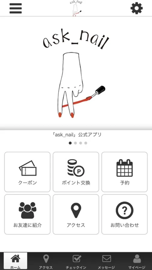 このアプリでは、ask_nailの最新情報の受け取りや便利な機能を使う事ができます。