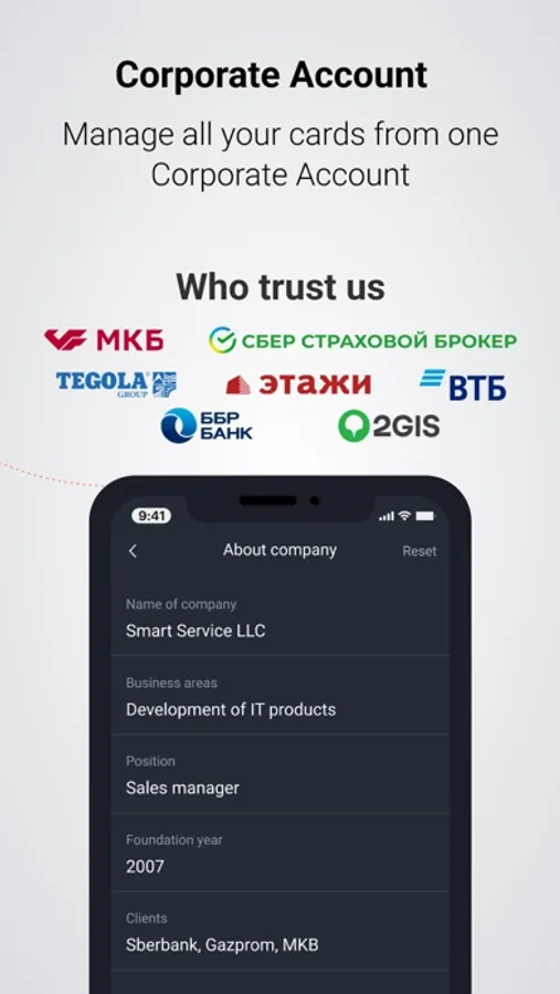 For businesses, we offer flexible tariff plans providing you with the opportunity not only to replace paper-based business cards with electronic ones, but also to manage your employees' business cards through a personal account. You can find more details on the website of our project: MyQRcards.com.