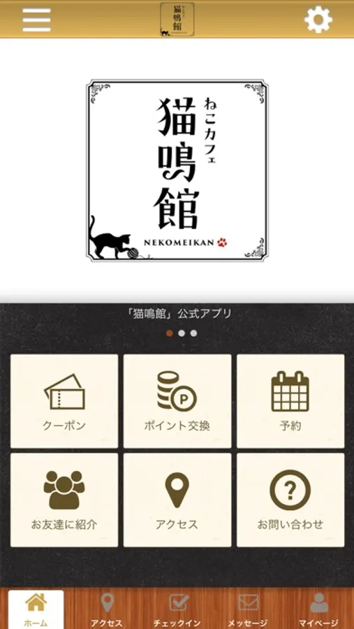このアプリでは、猫鳴館の最新情報の受け取りや便利な機能を使う事ができます。