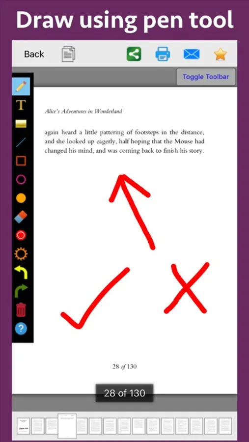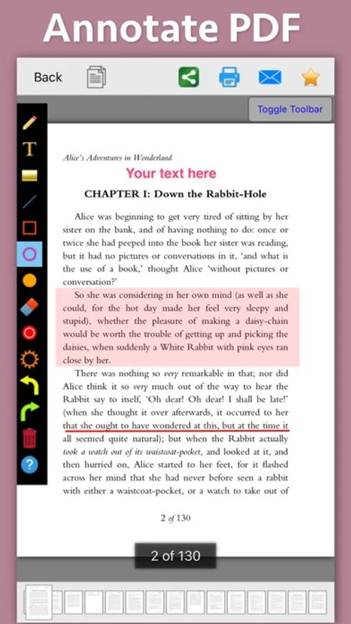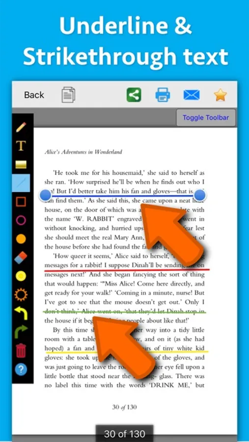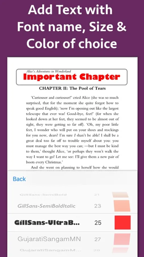 Write text on PDF, Highlight, underline ,draw shapes & customise using different Fonts, text size, colors and transparency level.