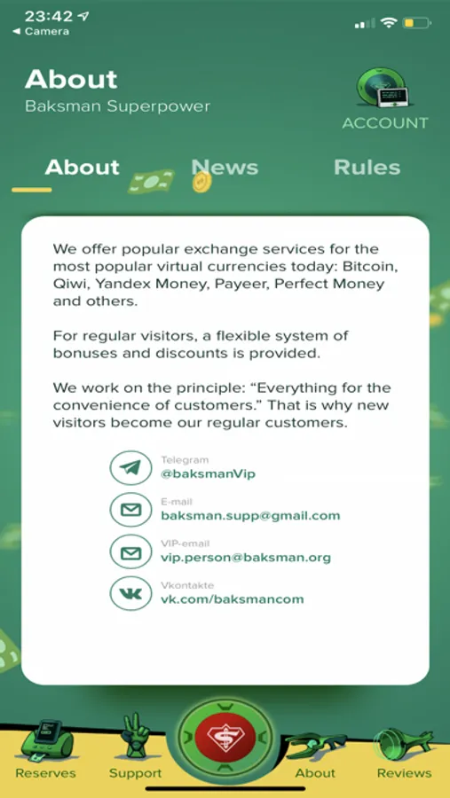 The service has conducted thousands of successful exchanges and has several thousand positive reviews. Is this really impressive ?! If you still have questions and difficulties, you can contact technical support through an online operator or by writing to e-mail: baksman.supp@gmail.com