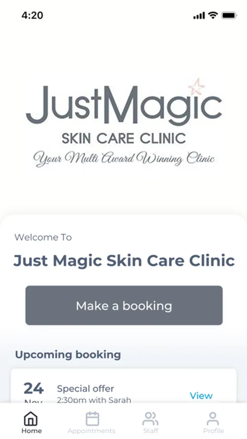 The Just Magic Skin Care Clinic app makes booking your appointments and managing your loyalty points even easier. You're just a few taps away from feeling good and looking great!