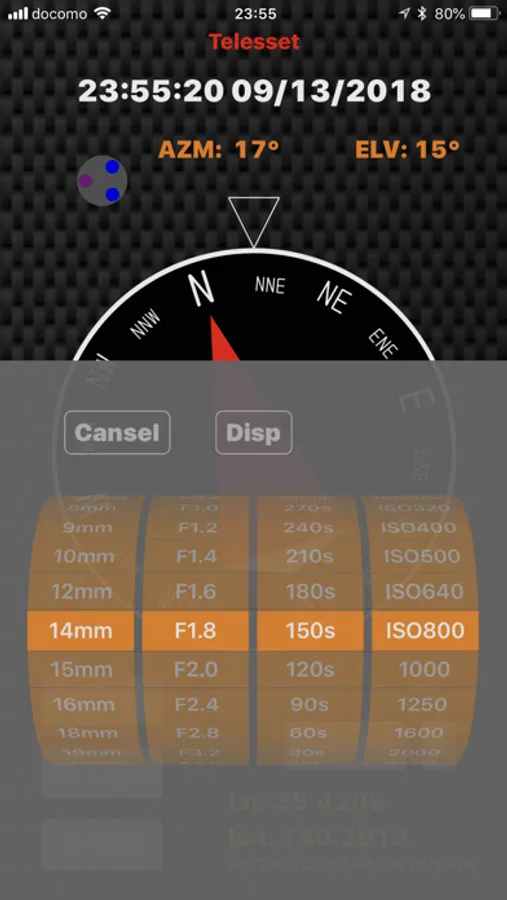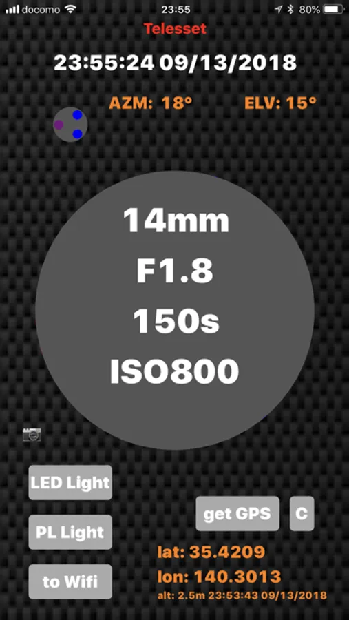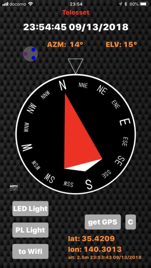 · You can tap [C] after getting GPS coordinates to display a utility, which helps you configure a Celestron astronomical telescope quickly and accurately.