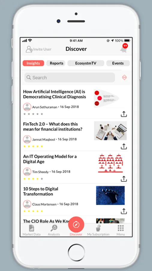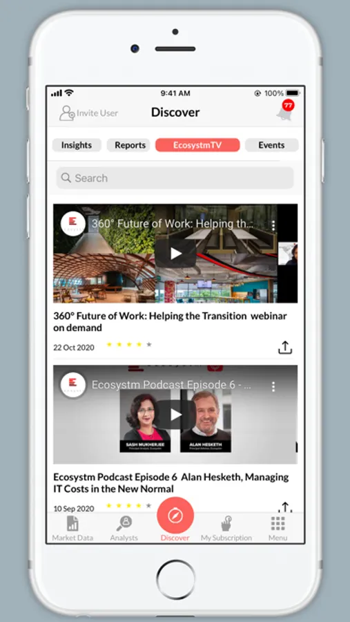 The Ecosystm app provides users with access to real-time and contextualized, data, analysis, and research to assist them in their technology decision-making processes.