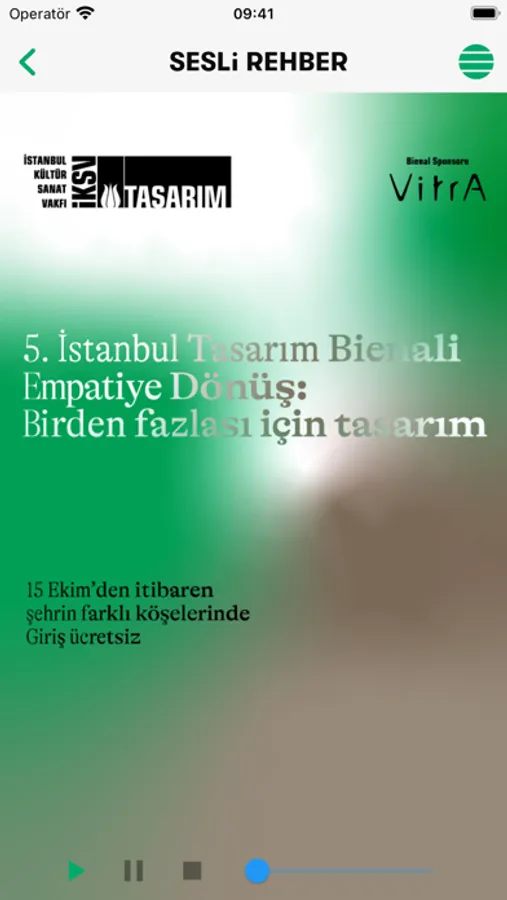 The ‘audio guide’ application, developed by the Istanbul Foundation for Culture and Arts for the 4th Istanbul Design Biennial in 2018, is renewed to accompany you at the 5th Istanbul Design Biennial, curated under the title of “Empathy Revisited: design for more than one” by Mariana Pestana, in 2020. This audio guide where you can get an idea about the conceptual framework of the biennial, and listen to audio narratives about the works exhibited in the streets of Istanbul and digitally in addition to Pera Museum and ARK Kültür, is designed for those who would like to tour the exhibition with a company, and others who would like to explore the exhibition from afar. Narrations belong to Yunus Kaan Yalman in Turkish, Berivan Yurtsevener in English, and Selda Yıldırım in Arabic.