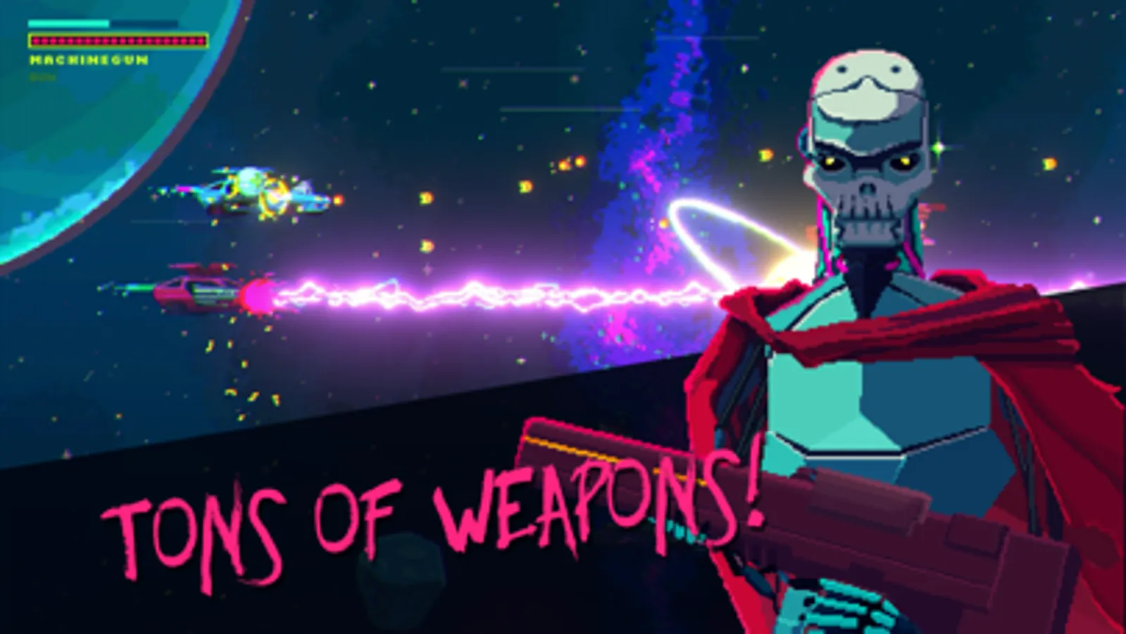 Use hordes of different weapons, upgrades and drones to succeed in your quest!