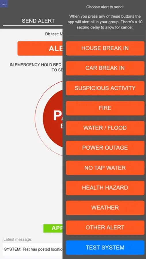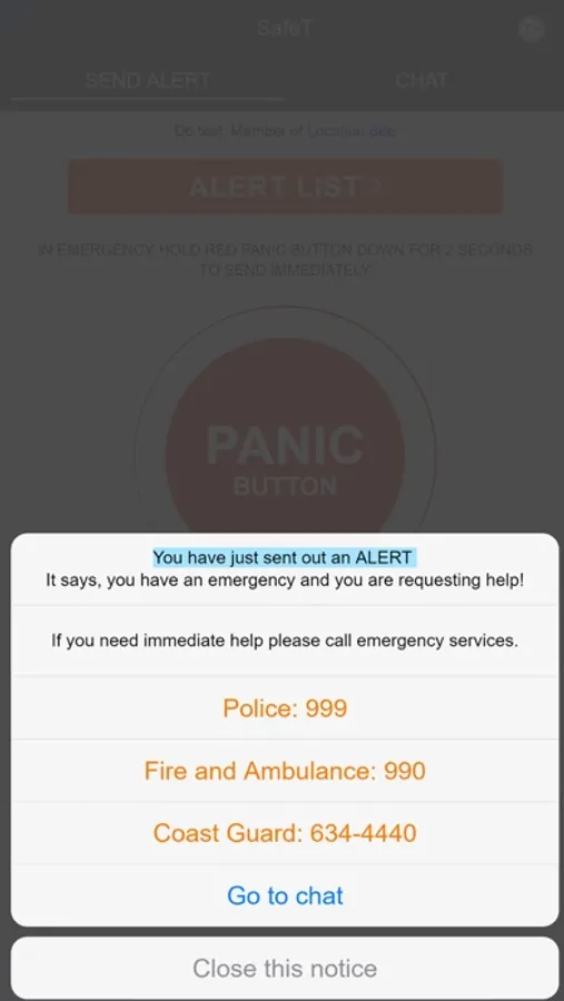 In an emergency, press the Panic Button or any predefined emergency buttons and the app will immediately send out an alert to all members of your group.