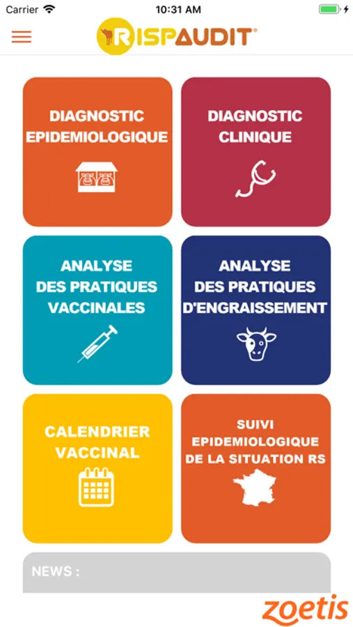 Rispaudit® Audit est une application destinée aux vétérinaires et étudiants vétérinaires. Elle permet de déterminer rapidement et de hiérarchiser les facteurs de risque de maladies respiratoires bovines dans tout type d’exploitation.