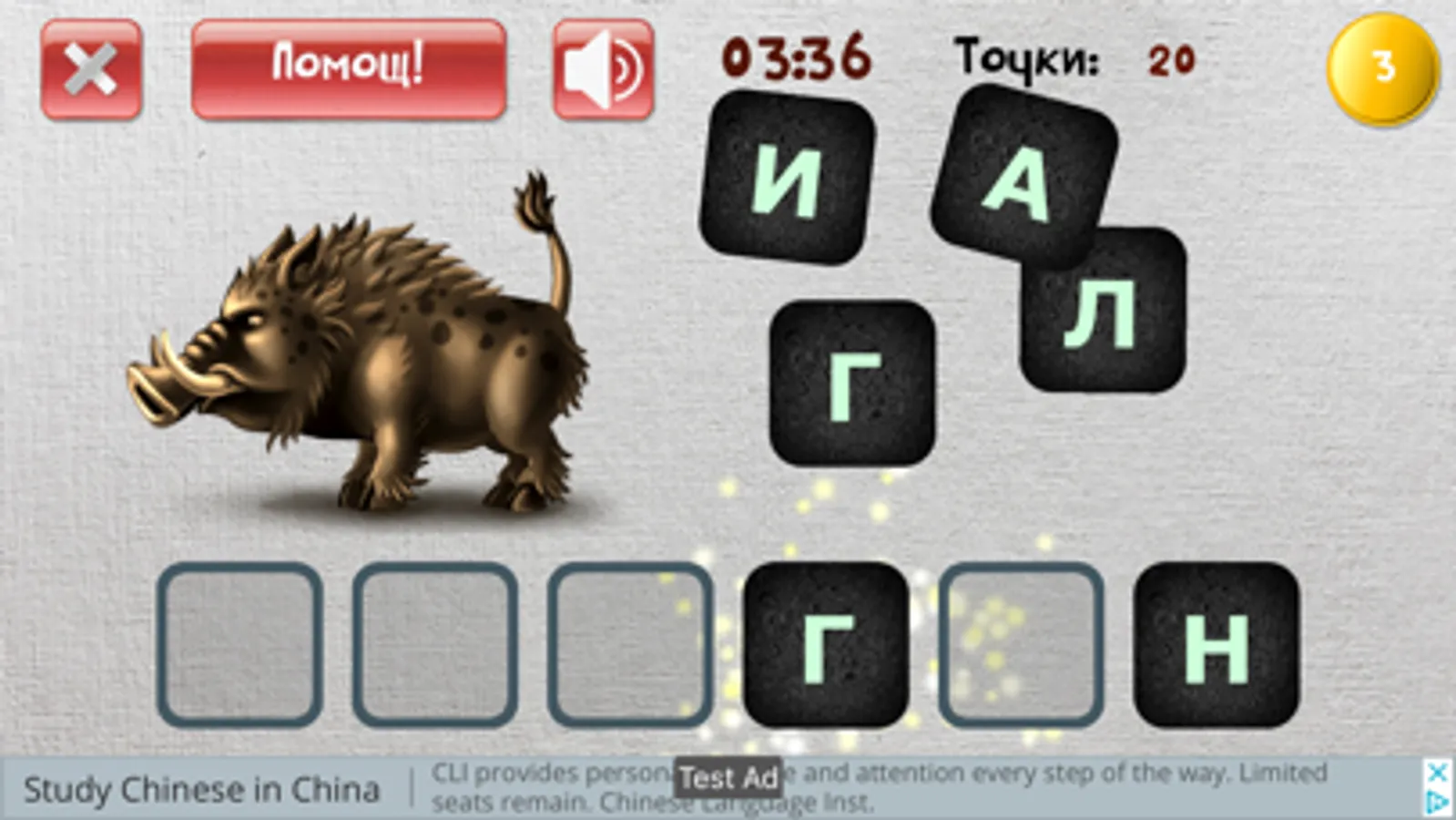 Целта на тази игра е да се подреди правилно името на животното на картинката.