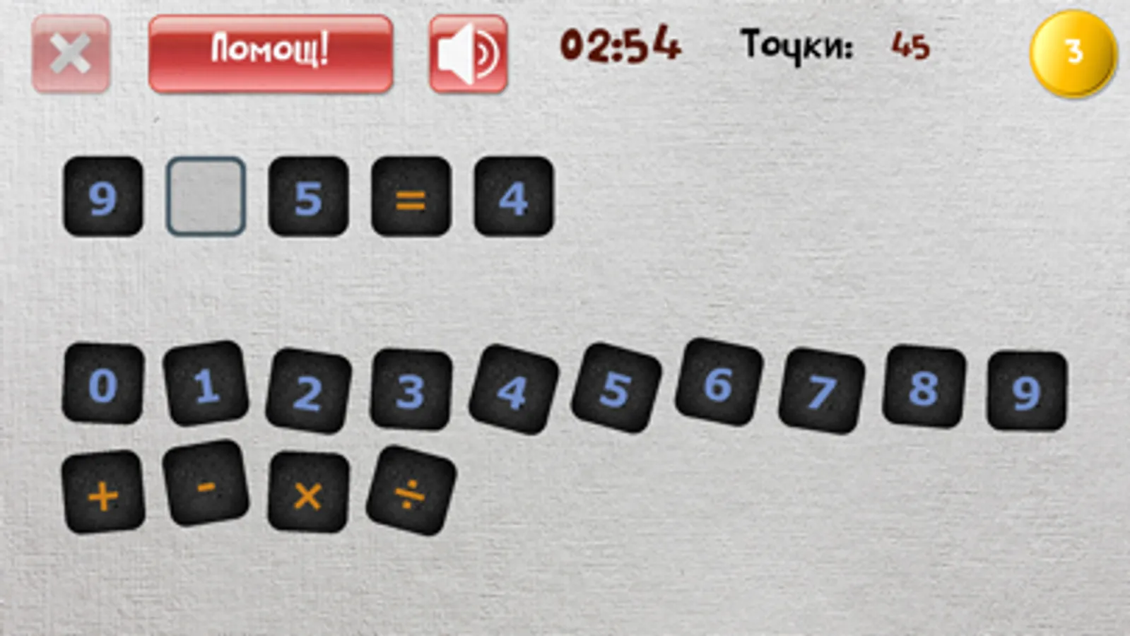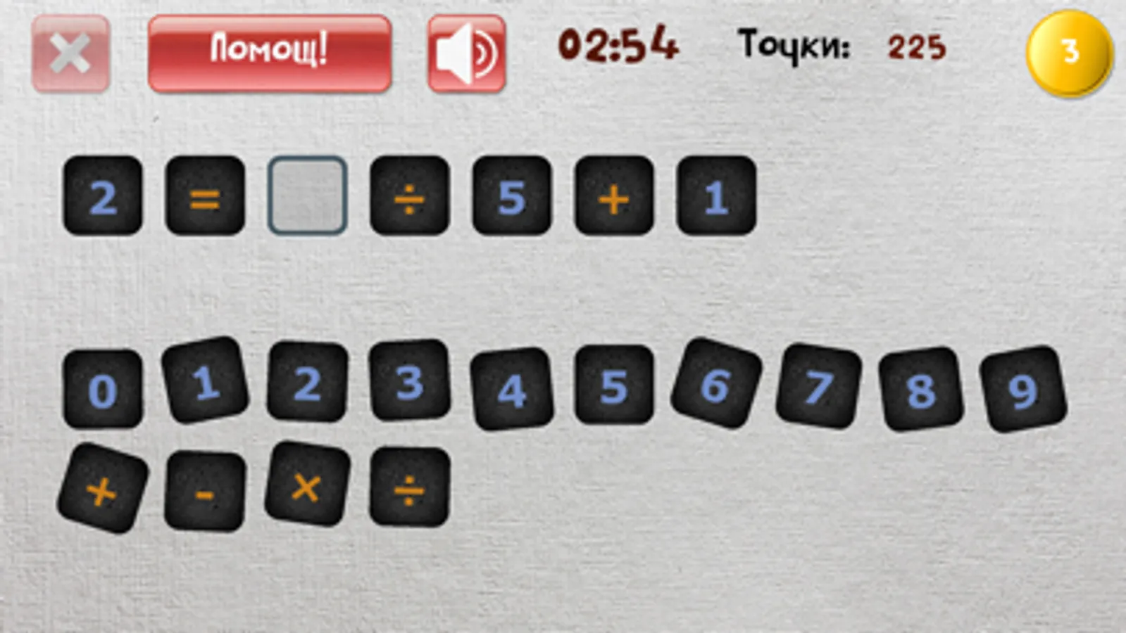 Целта на тази игра е да се открие правилната цифра или аритметичен знак в аритметичен израз.