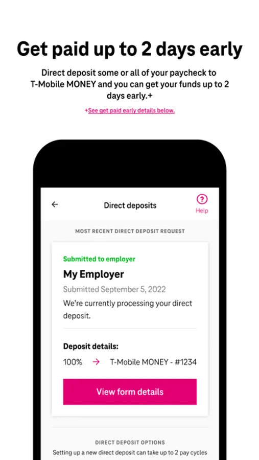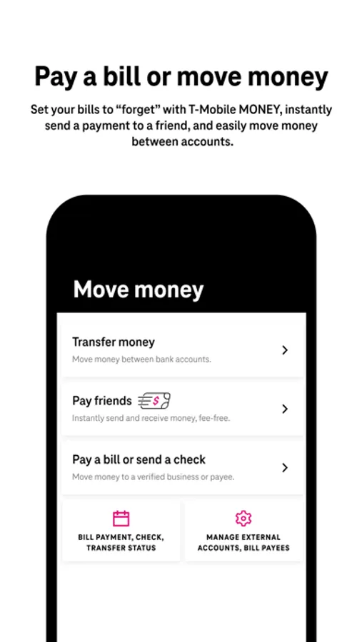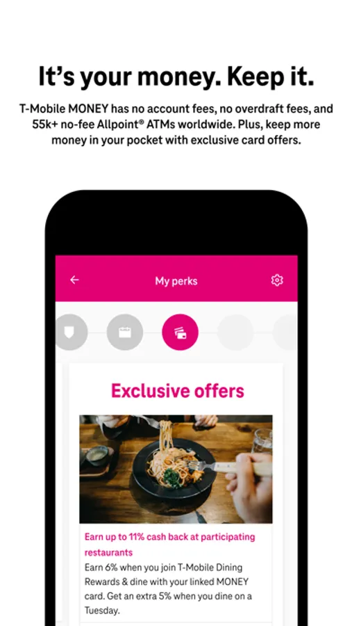 T-Mobile MONEY is the banking service that puts you & your money first! Save with no account or overdraft fees. Take your dollars further with industry-leading interest & exclusive partner offers. Get your paycheck early with direct deposit⁺, make payments without fees, & withdraw cash at 55k+ no-fee Allpoint® ATMs.^ Download the app & start banking better today!