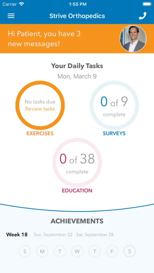 • Automatically count your exercise reps and sets with guided and interactive preoperativeand post-surgical rehab exercises