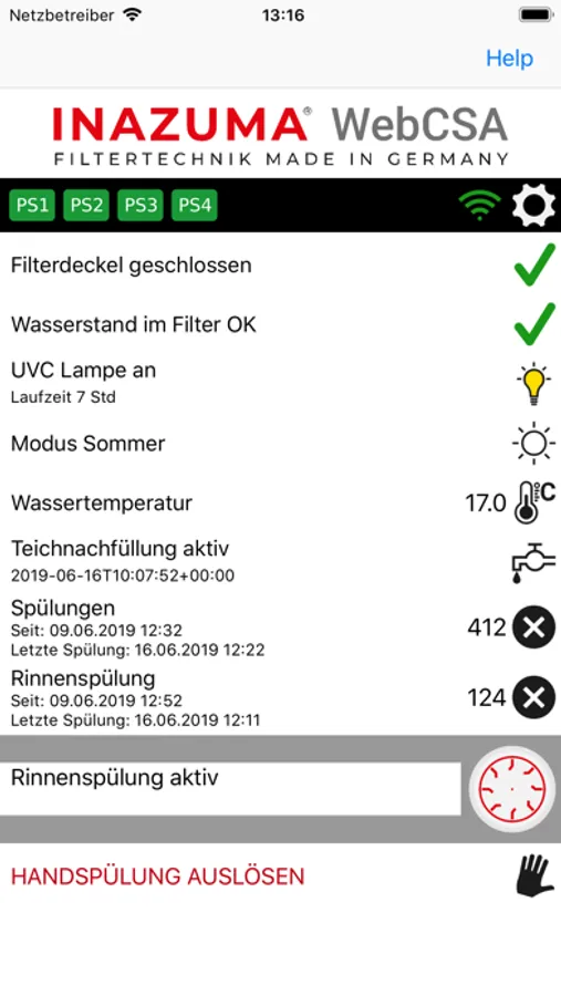 With the WebCSA App you can configure and monitor your Inazuma filter system.