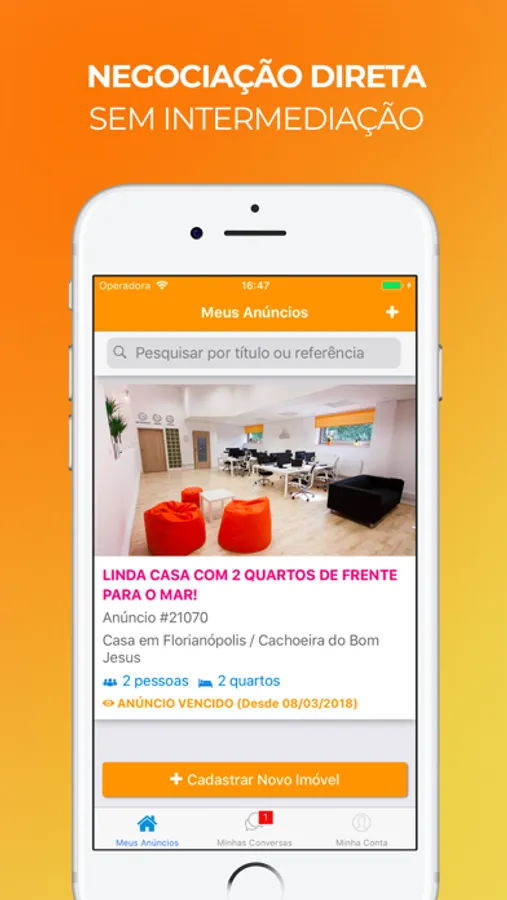 Com o App do Anunciante, você pode anunciar seus imóveis no TemporadaLivre.com e gerenciar seus anúncios no seu celular, com rapidez e praticidade, bem como responder às consultas dos viajantes.