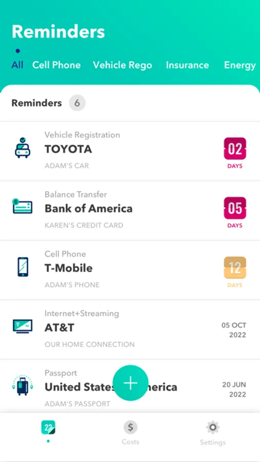 Use GetReminded to save money, make life less stressful, by taking control of regular and annual expenses. You won't forget to renew important personal identity documents on time either, like vehicle registration, licences, and passport. Also reminders for personal and pet health, birthdays and anniversaries. GetReminded won't let you forget.