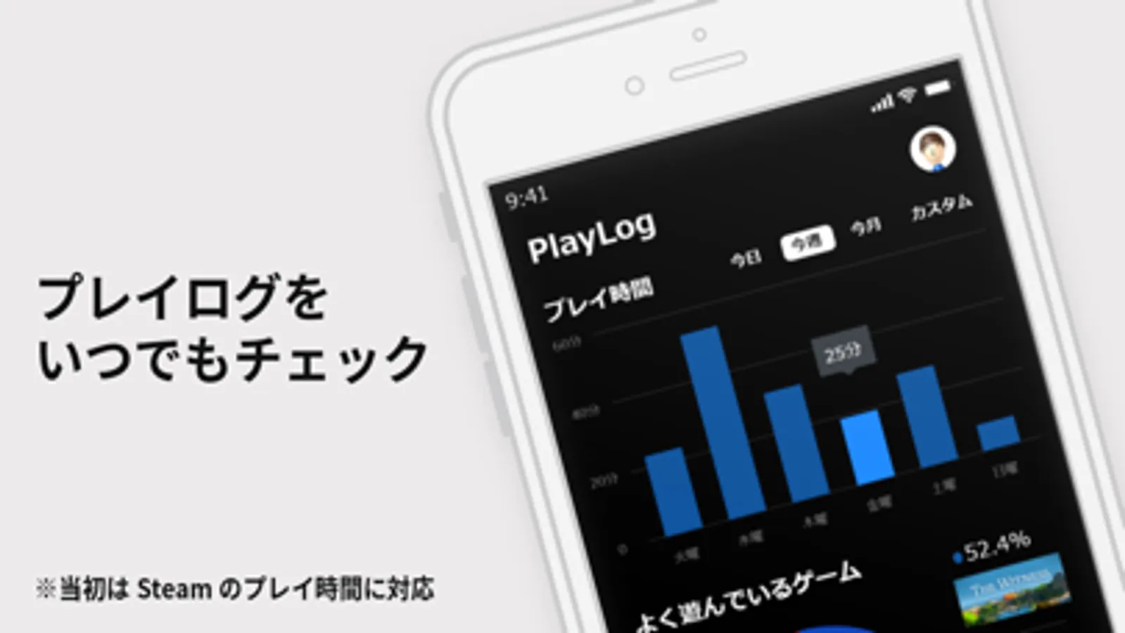 Steamと連携して、遊んだゲーム作品や時間を管理できます。