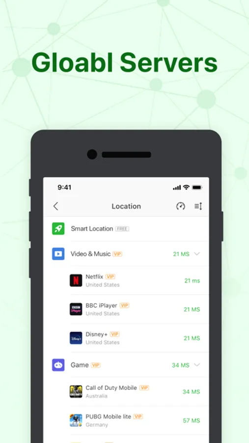 • Games VPN: PUBG Mobile, PUBG Mobile Lite, Marvel Super War, Roblox, LOL Wild Rift etc.