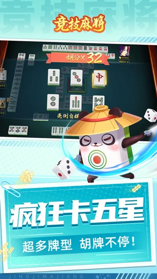 《竞技麻将》是一款刺激好玩的麻将游戏,包含卡五星、武汉麻将等经典玩法。轻松休闲的游戏氛围,紧张刺激的线上比拼,超高倍数,让您一直有杠胡不停的极致体验!