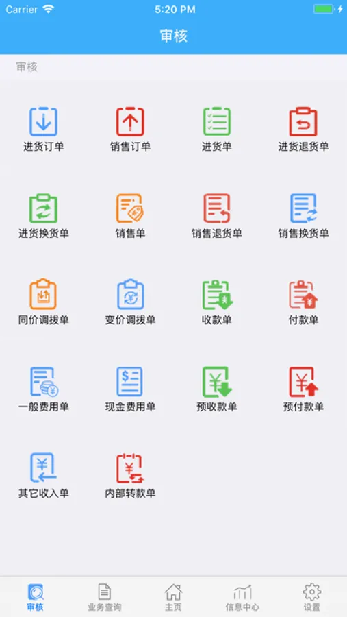 5.支持进货换货单、变价调拨单、预收款单、预付款单、其它收入单、内部转款单的审核操作