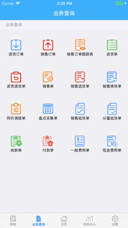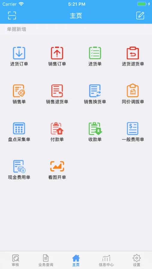1.支持进货单、销售单、进货退货单、销售退货单、销售换货单、进货订单、销售订单的 新建、审核、查询、打印