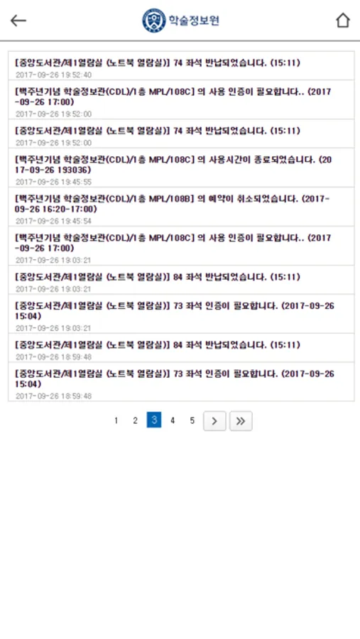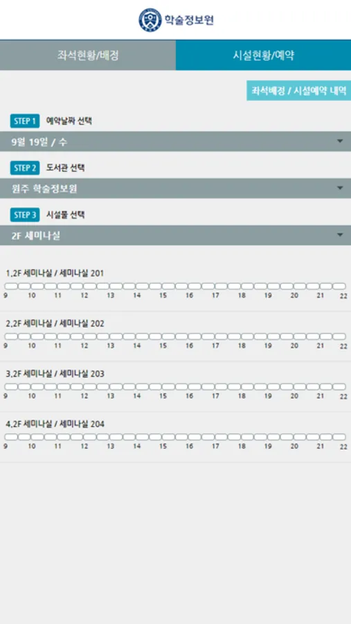 - 도서관내 좌석 및 시설의 배정 예약 현황 조회