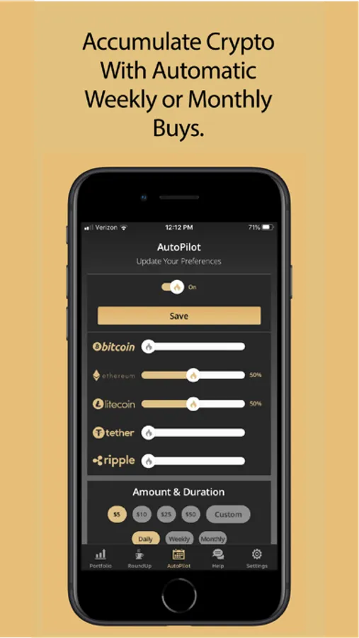 Automated features such as RoundUp and Autopilot allow users to purchase crypto hands-free!