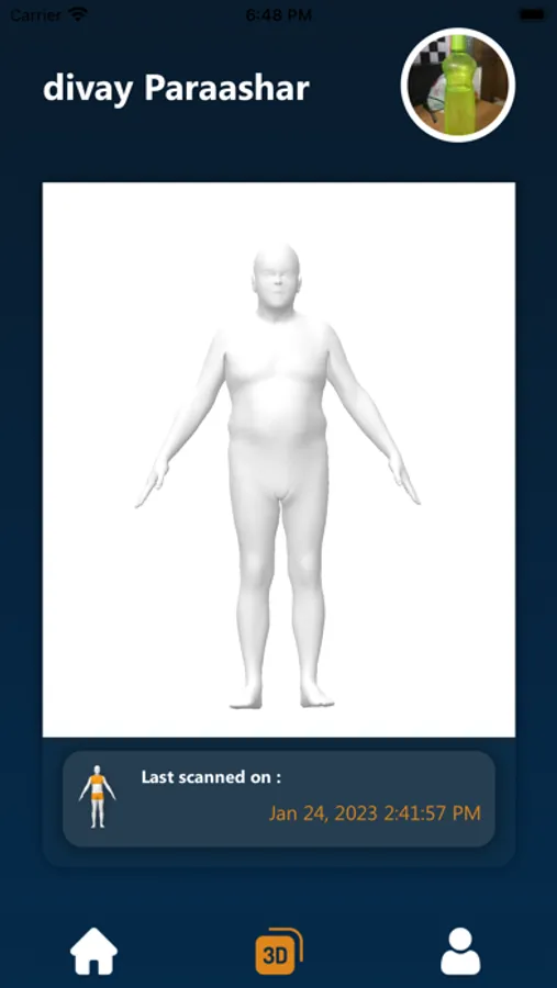 Within 17 sec of scanning, the app displays 3D body measurements and size recommendations.